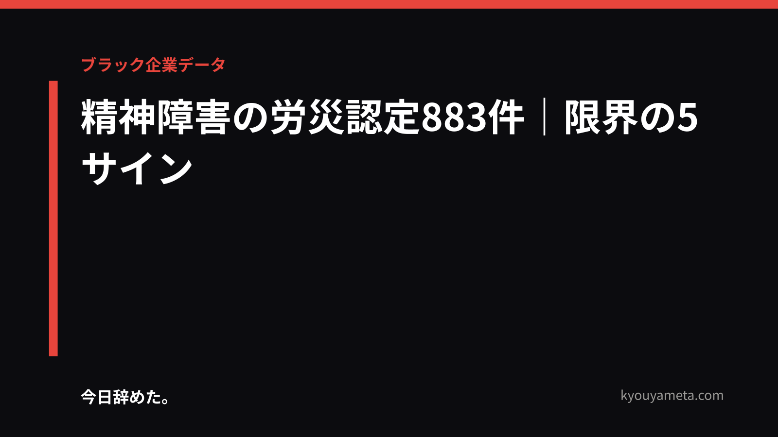 職場での精神的な追い詰められが「労災」として認定されるケースが、過去最高水準で推移しています。厚生労働省の最新データによれば、精神障害による労災認定件数は883件に達しており、これは氷山の一角に過ぎません。多くの人が「まだ頑張れる」「自分が弱いだけ」と思い込み、手遅れになるまでSOSを出せないでいます。