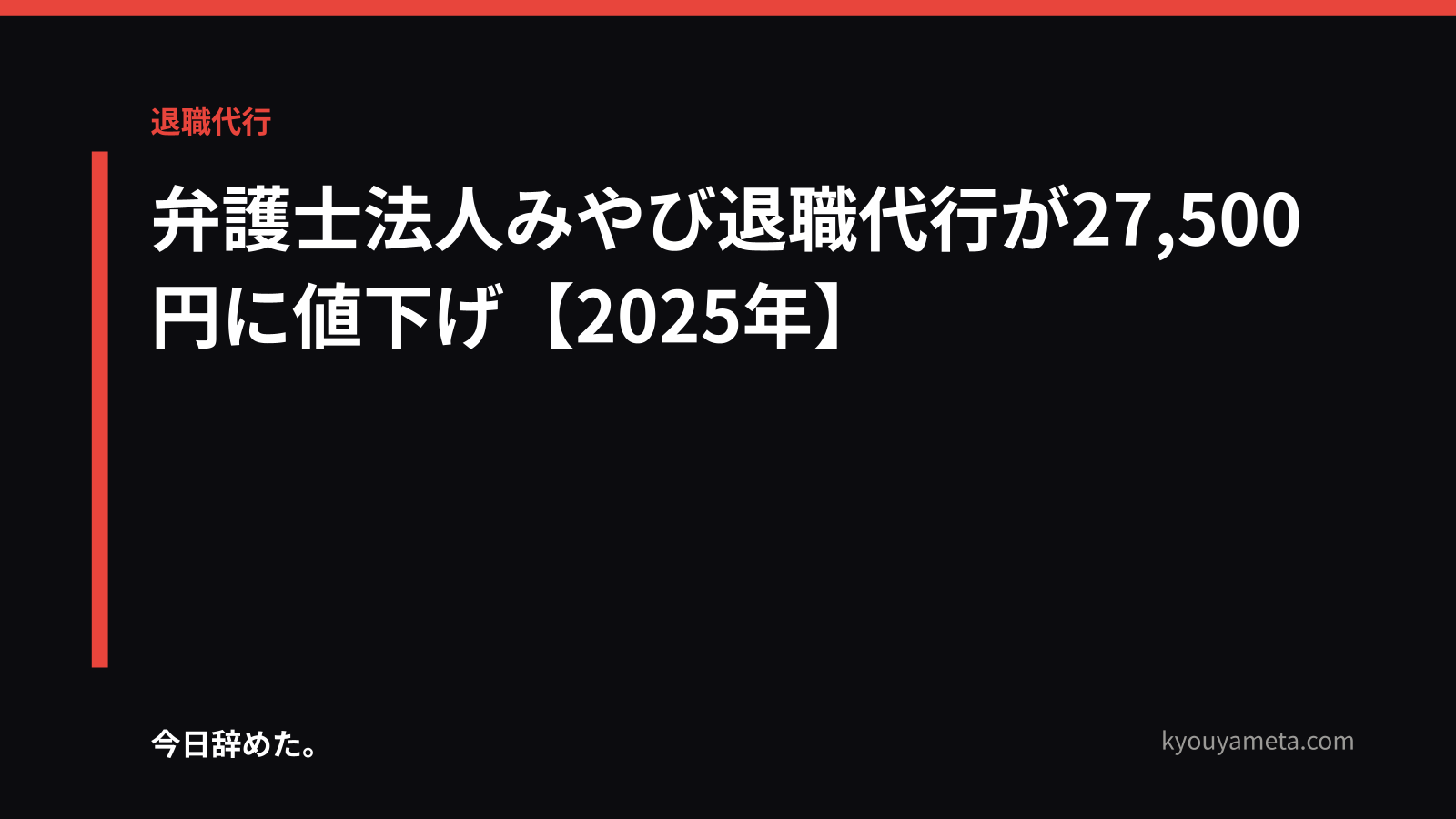 民間サービスの多くは15,000〜30,000円程度の料金設定です。費用面では比較的安価ですが、法的な交渉や請求が一切できないという点で大きな差があります。単純に退職の意思を伝えるだけであれば民間サービスでも十分ですが、未払い賃金や有給消化の交渉が必要な場合は弁護士法人みやびのほうが対応力の面で優れています。