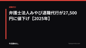 民間サービスの多くは15,000〜30,000円程度の料金設定です。費用面では比較的安価ですが、法的な交渉や請求が一切できないという点で大きな差があります。単純に退職の意思を伝えるだけであれば民間サービスでも十分ですが、未払い賃金や有給消化の交渉が必要な場合は弁護士法人みやびのほうが対応力の面で優れています。